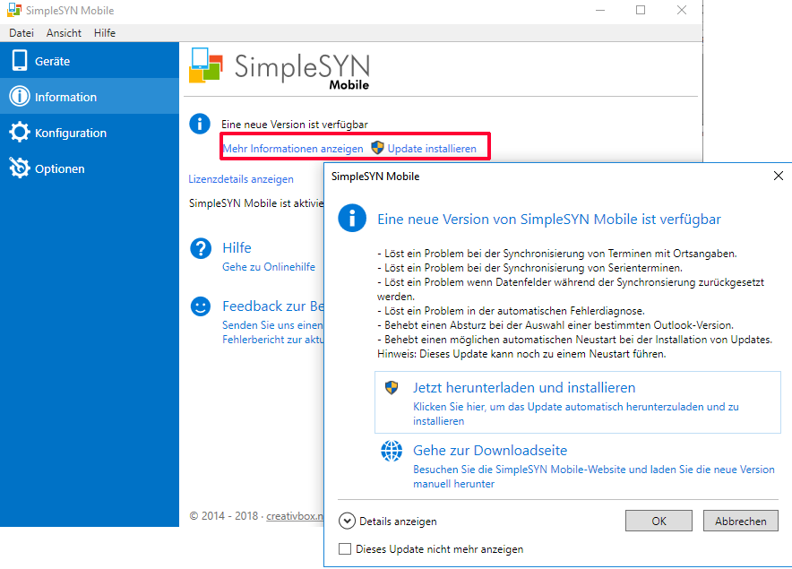 SimpleSYN Mobile BETA > Informationen zu Updates