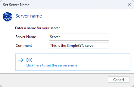 The SimpleSYN server will be displayed on clients under the name specified here. By default, SimpleSYN uses the current computer name as the server name.